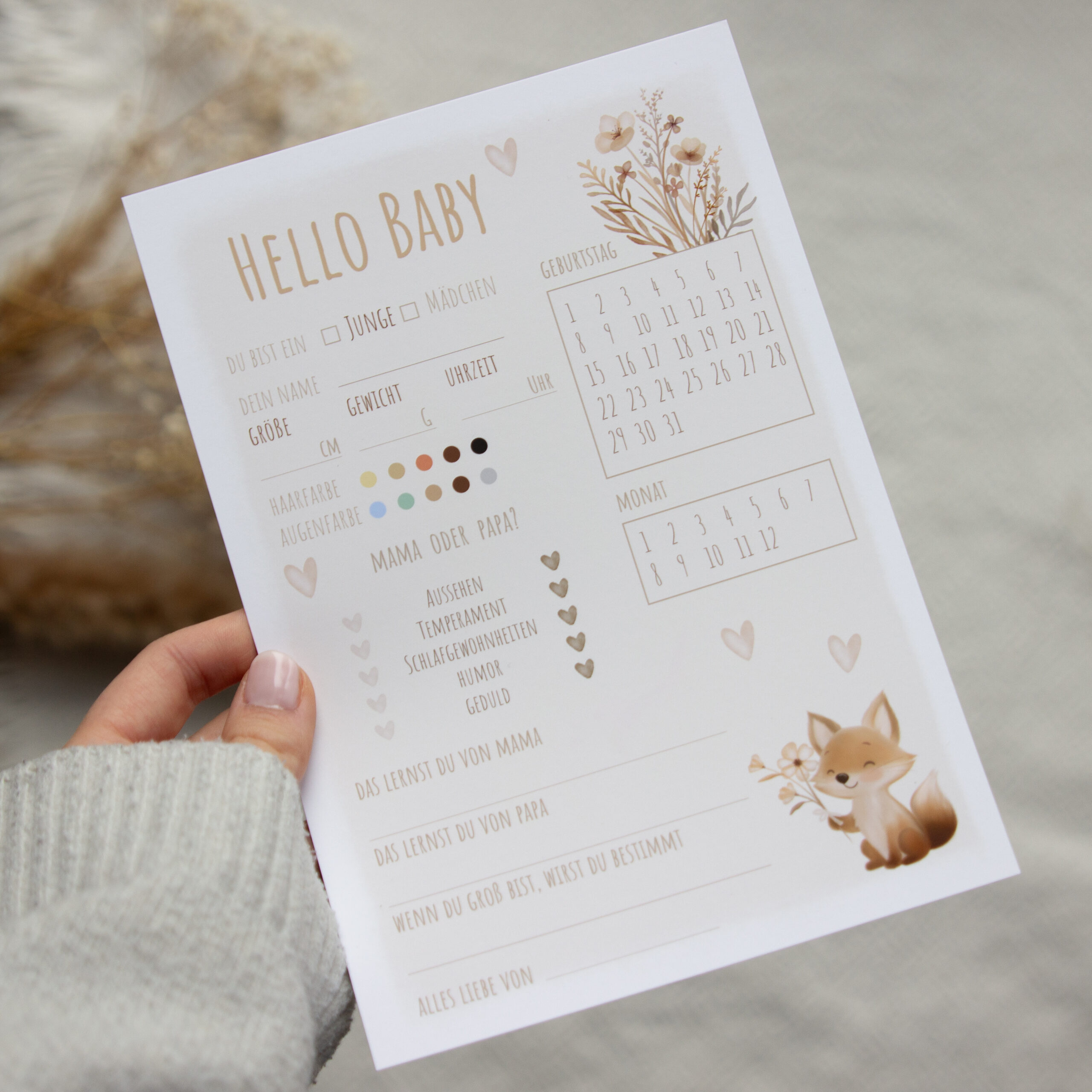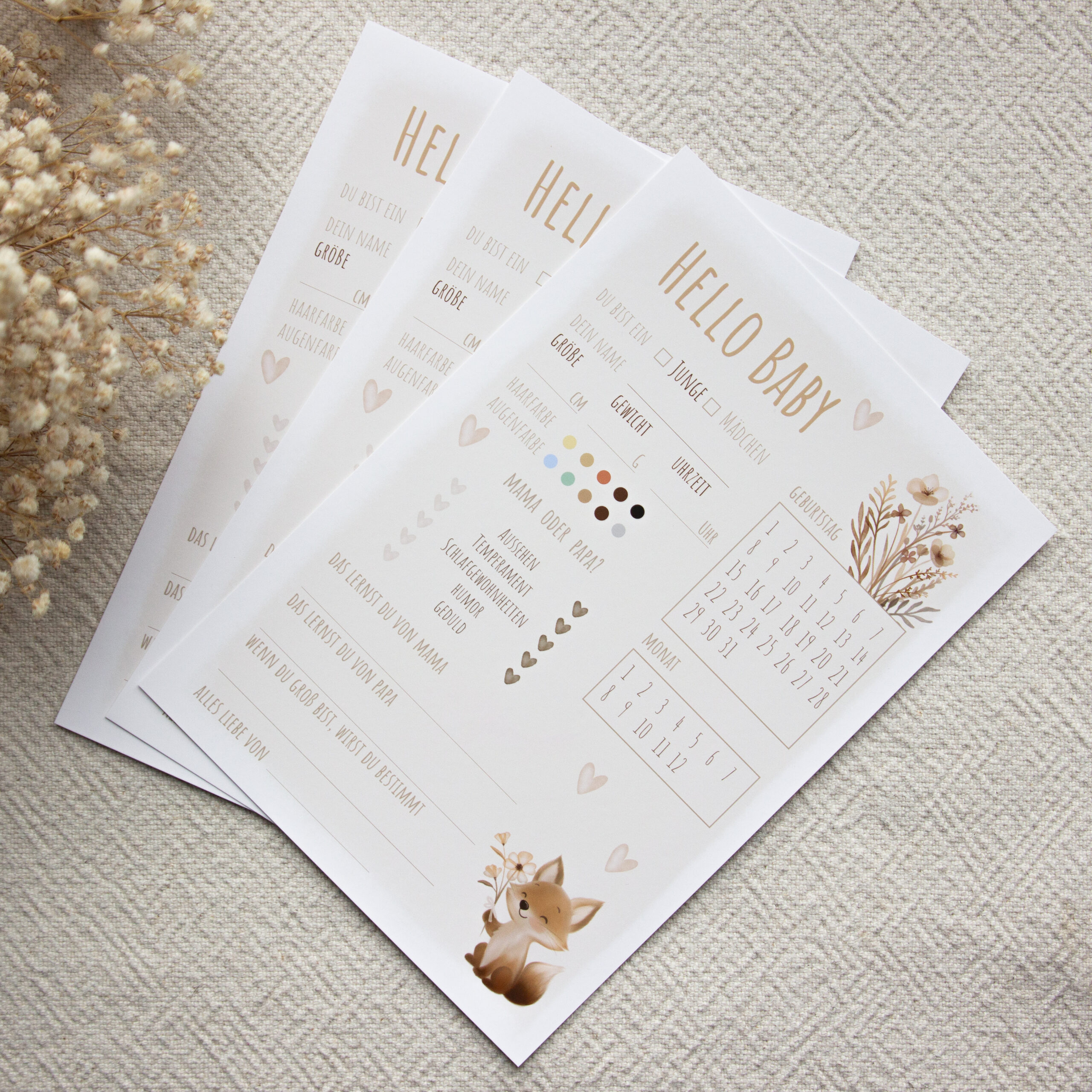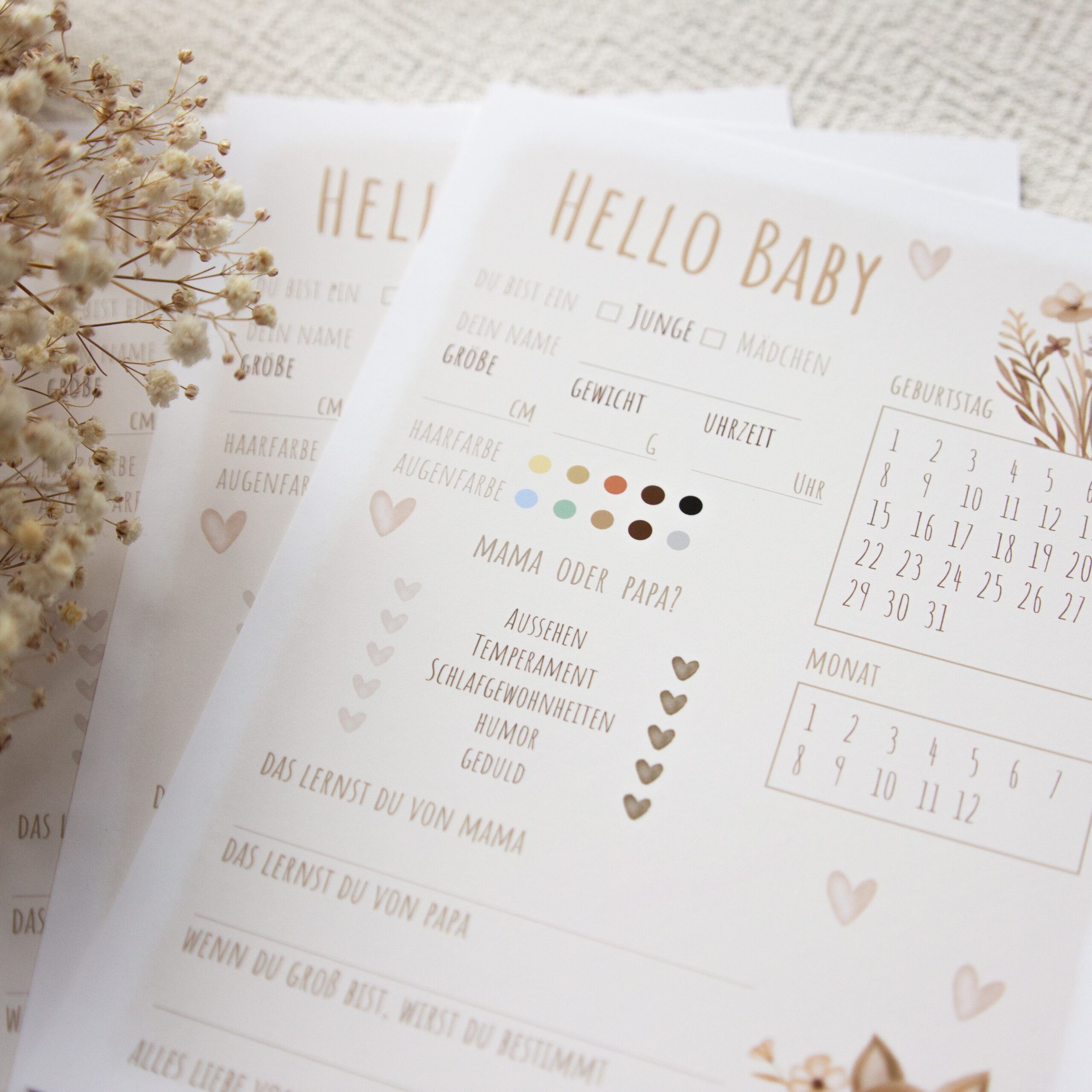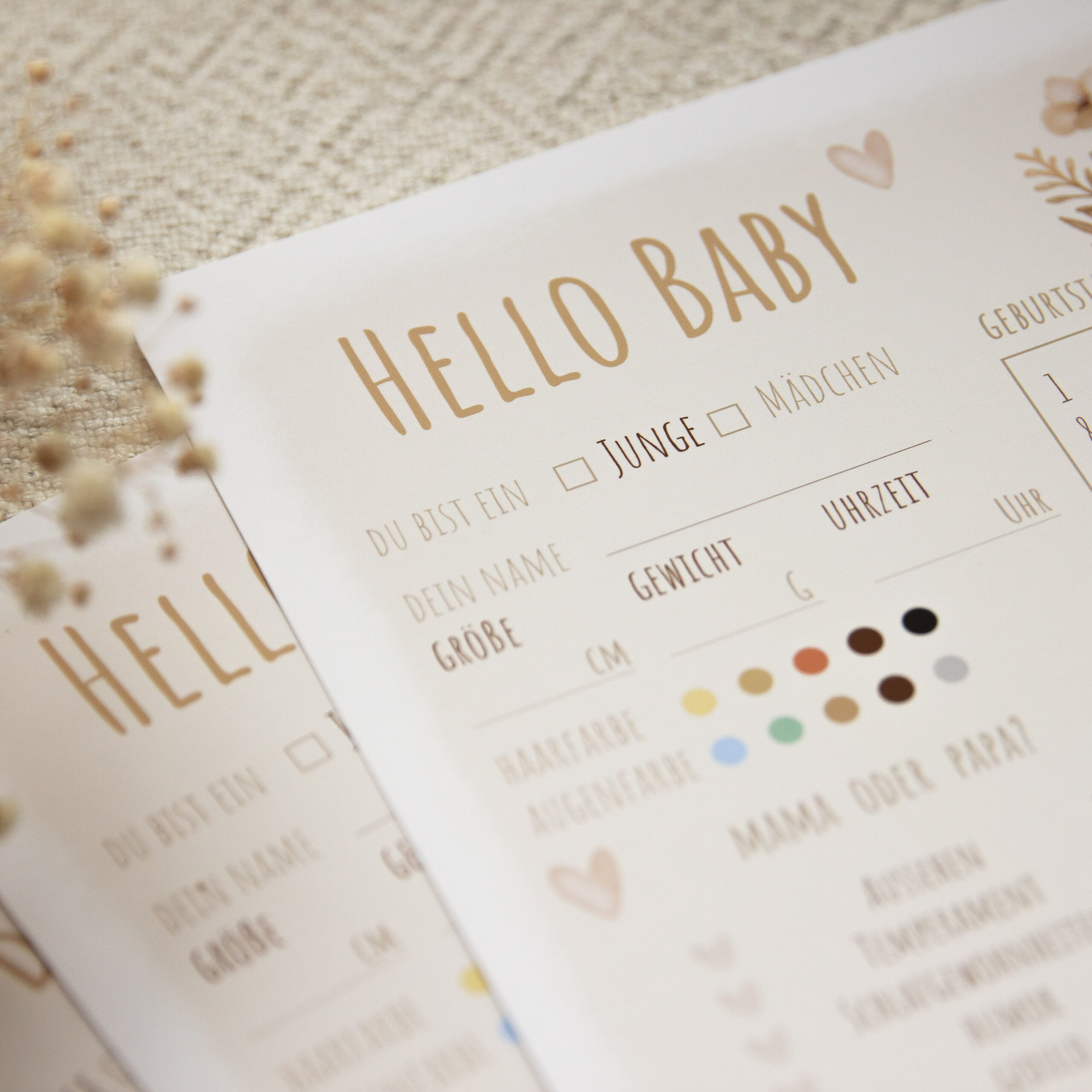 These A5-sized baby prediction cards are the perfect highlight for your baby shower or gender reveal party. Guests can fill in their guesses for the baby’s name, birthday, height, weight, and much more – a lovely keepsake for the parents and a fun activity for the celebration.