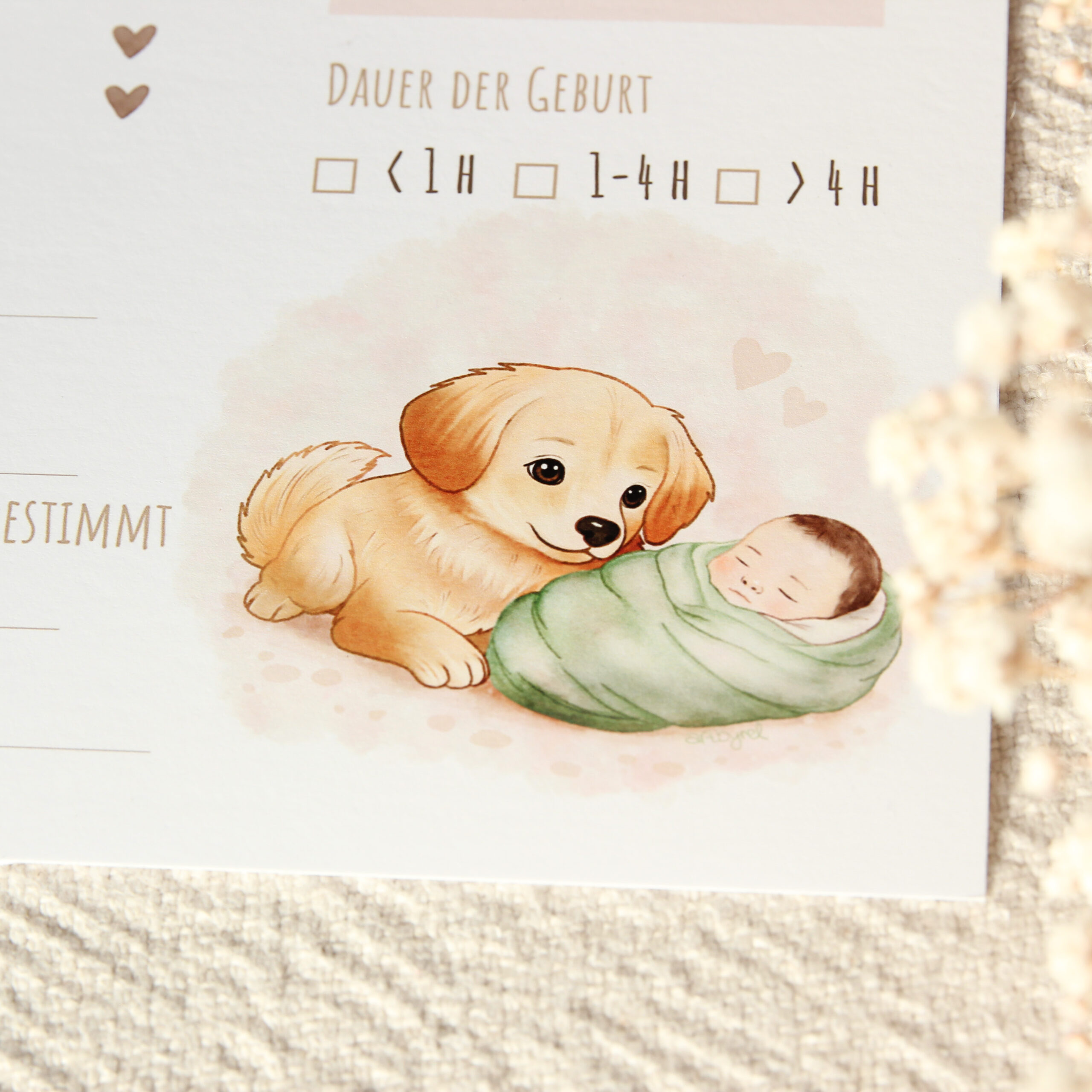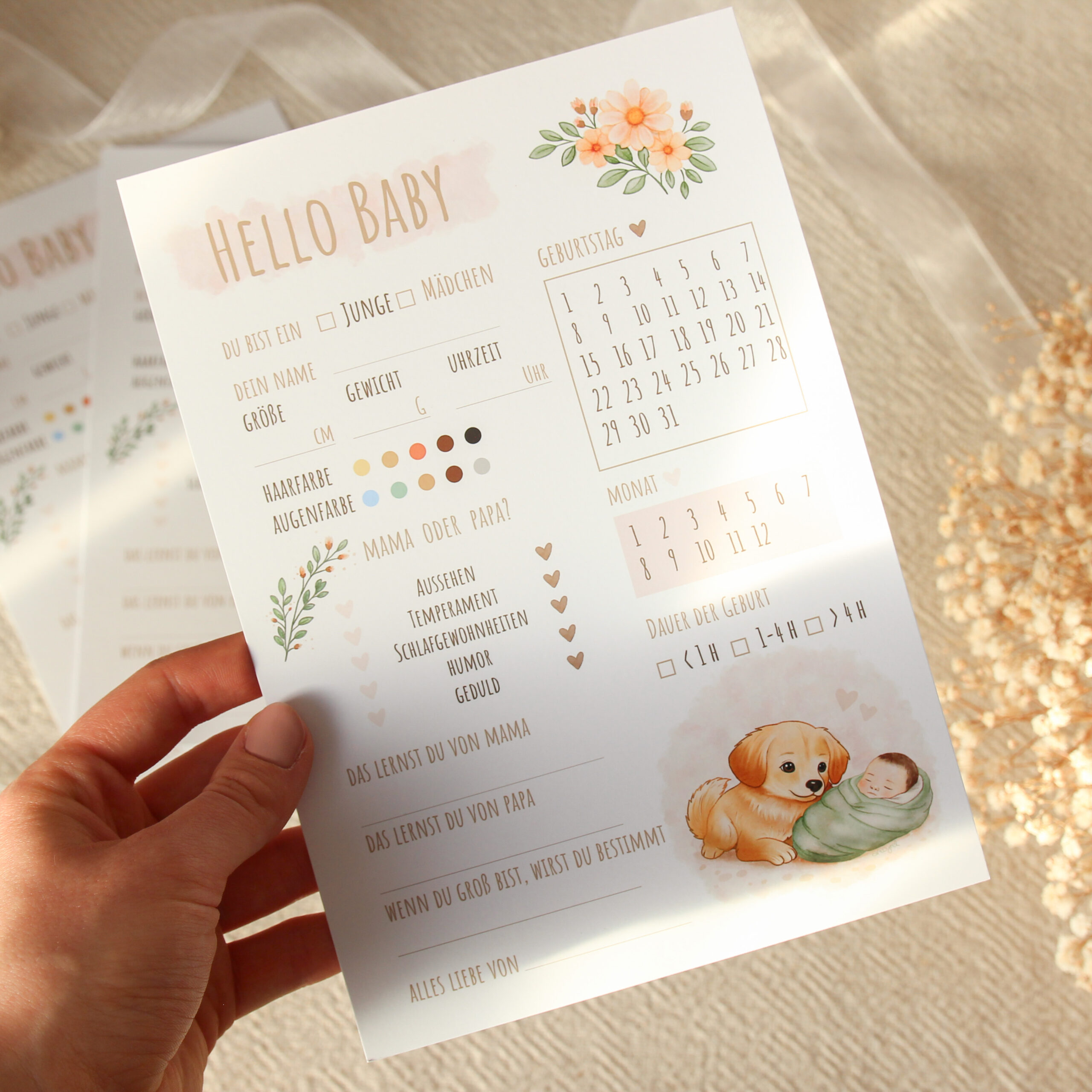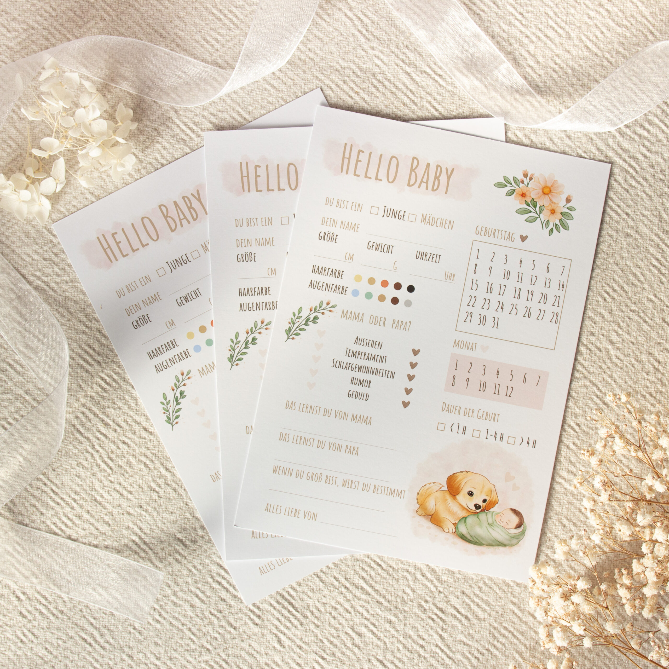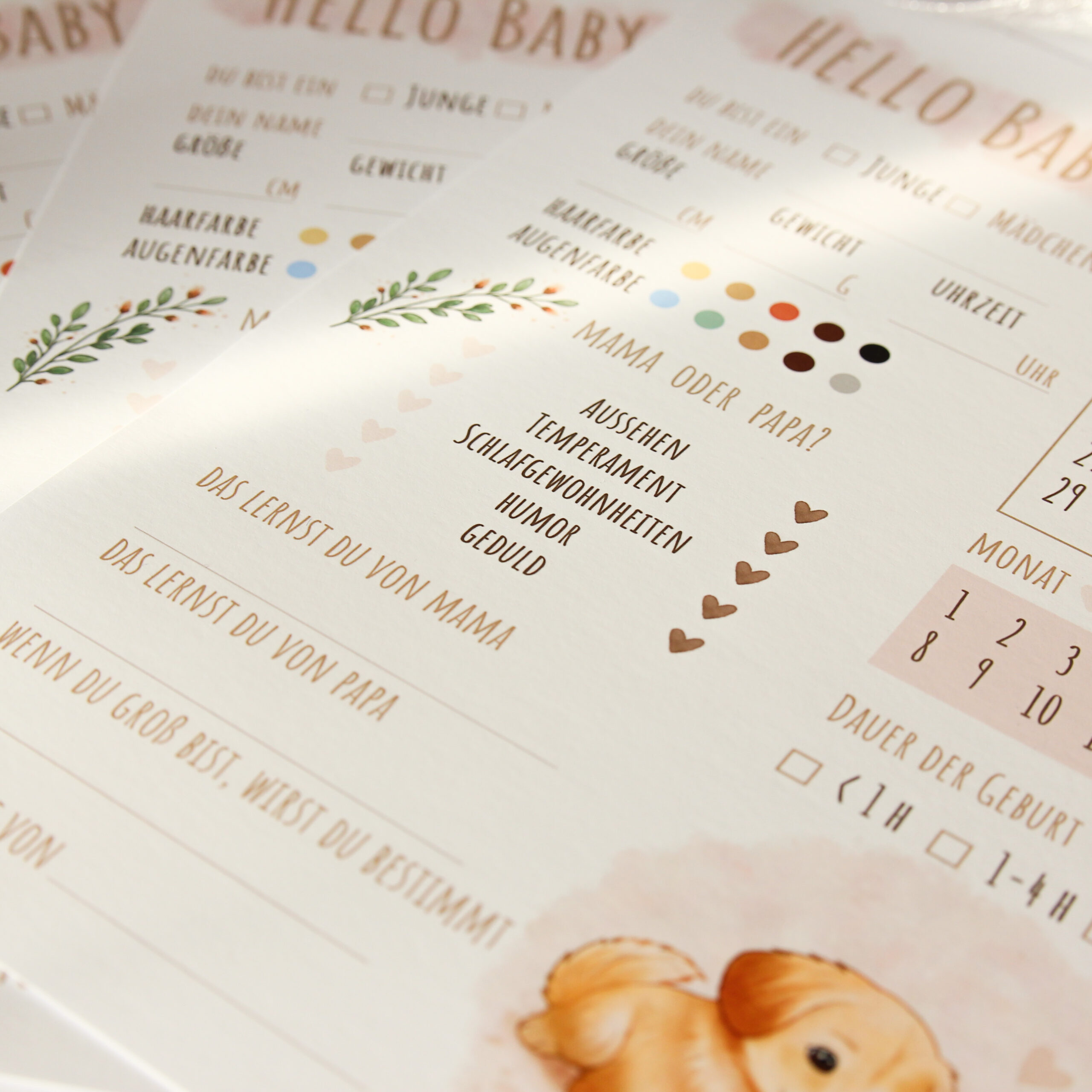 These A5-sized baby prediction cards are the perfect highlight for your baby shower or gender reveal party. Guests can fill in their guesses for the baby’s name, birthday, height, weight, and much more – a lovely keepsake for the parents and a fun activity for the celebration.