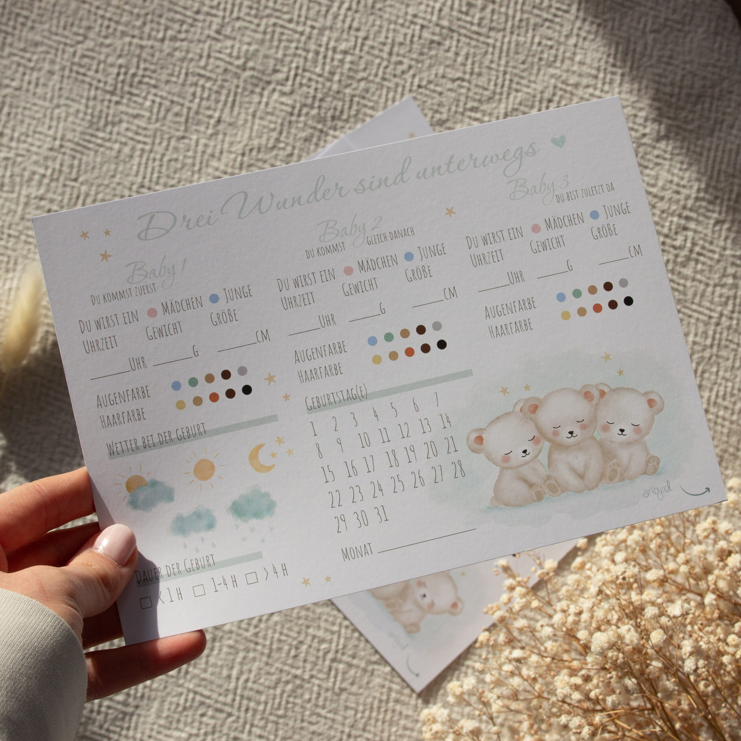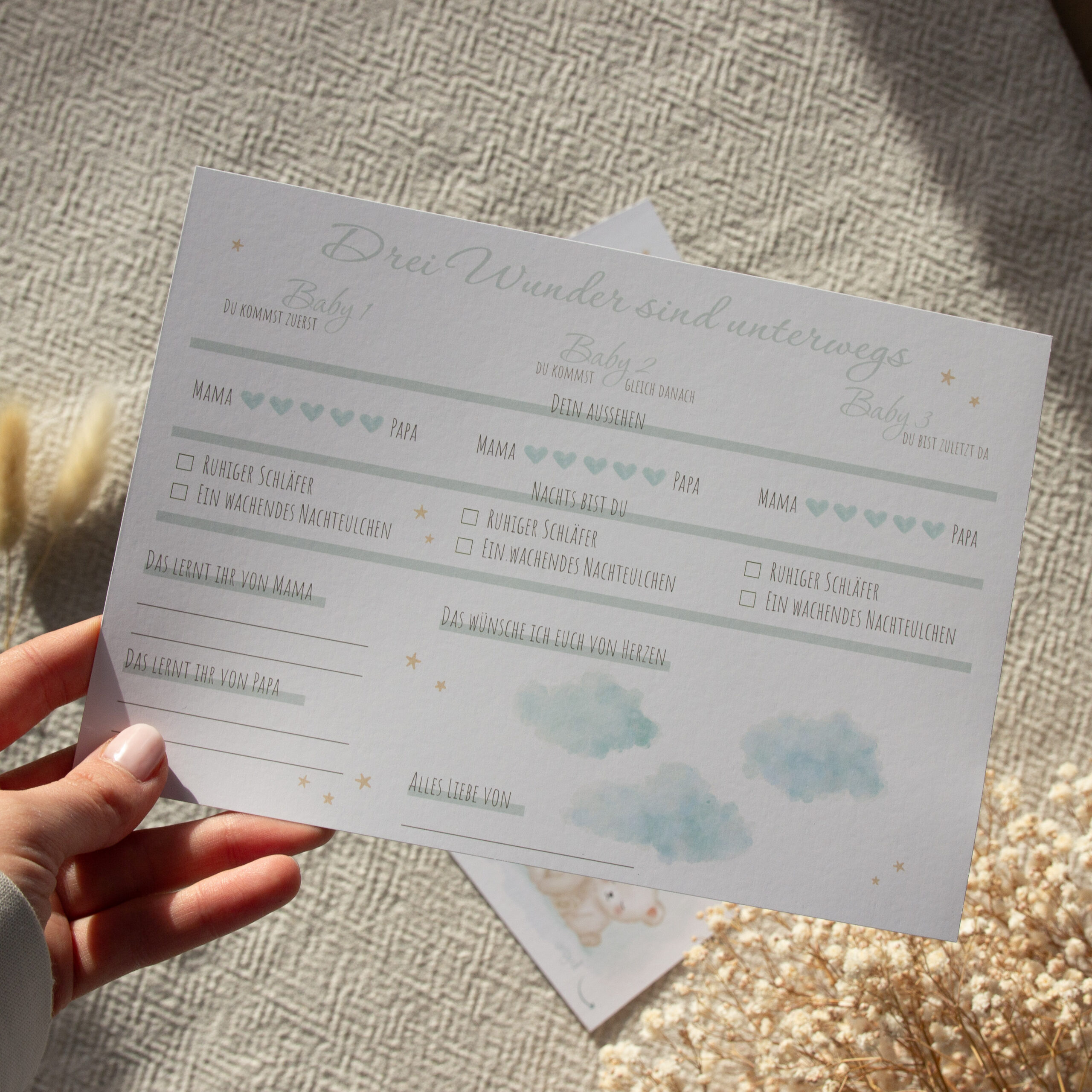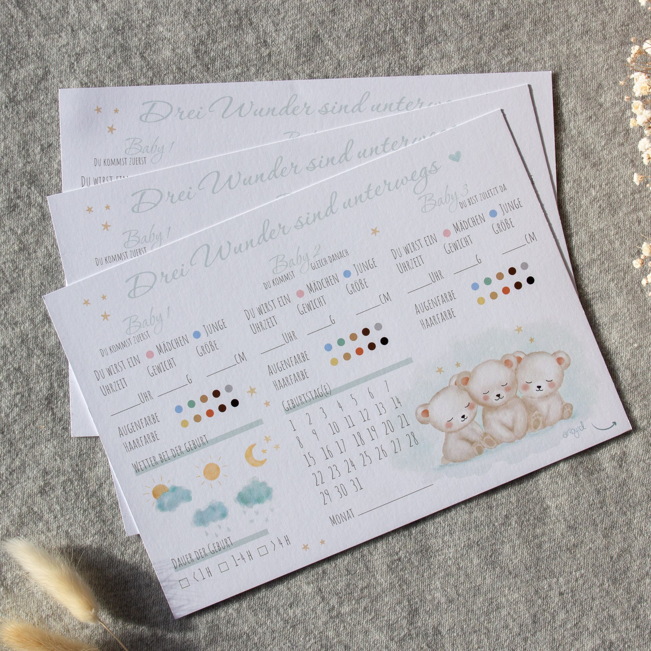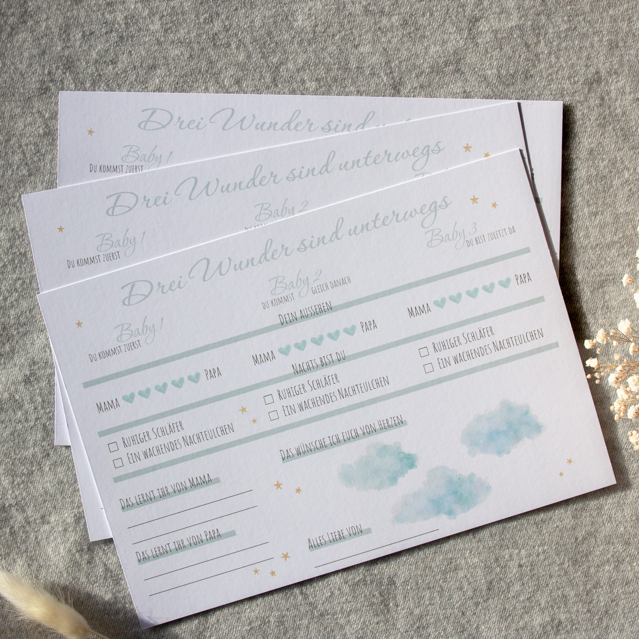 Triplet Baby Guess Cards – Baby Shower & Gender Reveal Game – A5